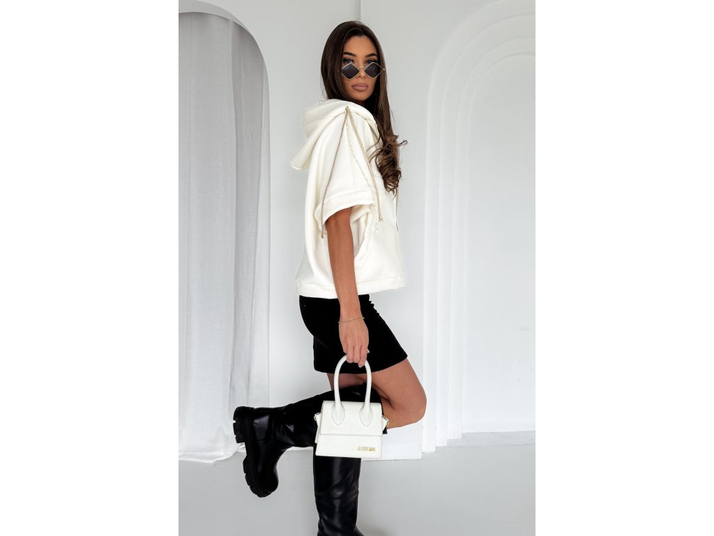 Mikina FUNKY v barvě ecru je jedinečný kousek s lichoběžníkovým, volným střihem, který dodá outfitu moderní a ležérní vzhled. Díky oversized designu skvěle sedí na každou postavu a umožňuje vrstvení – perfektní v kombinaci s rolákem nebo dlouhým rukávem.