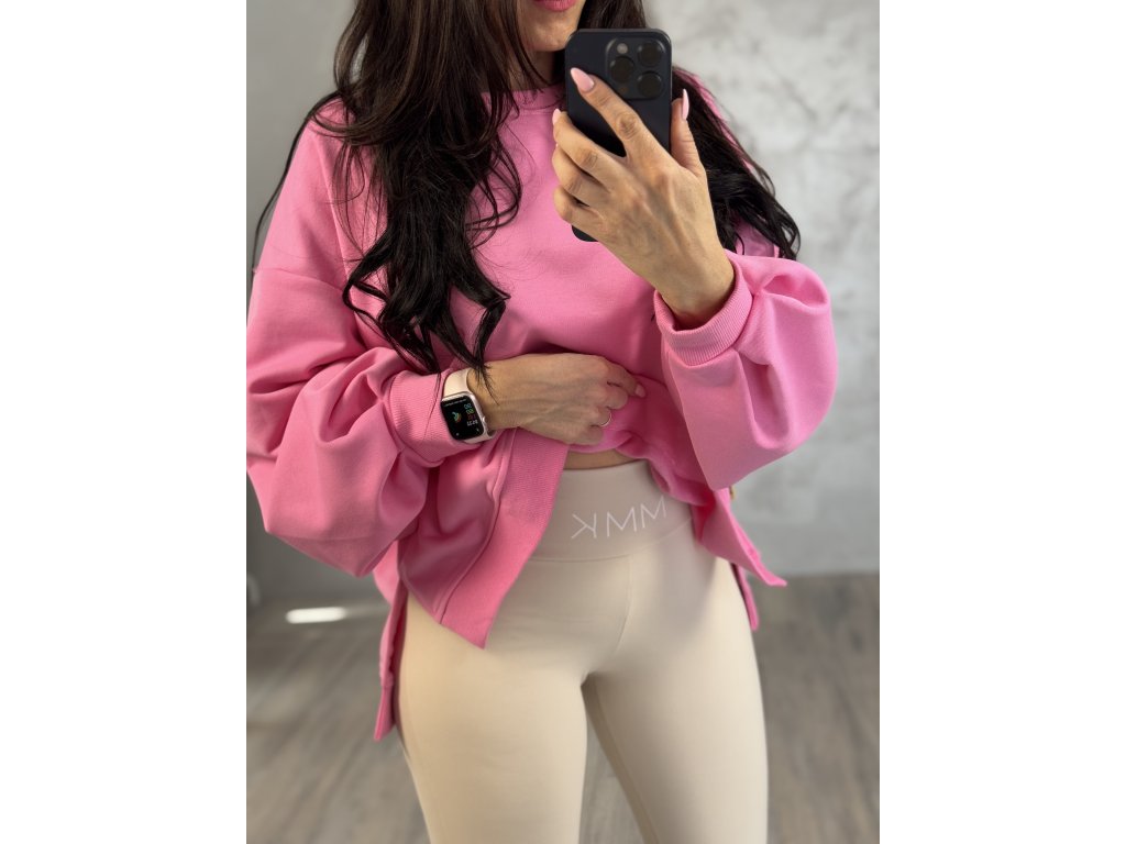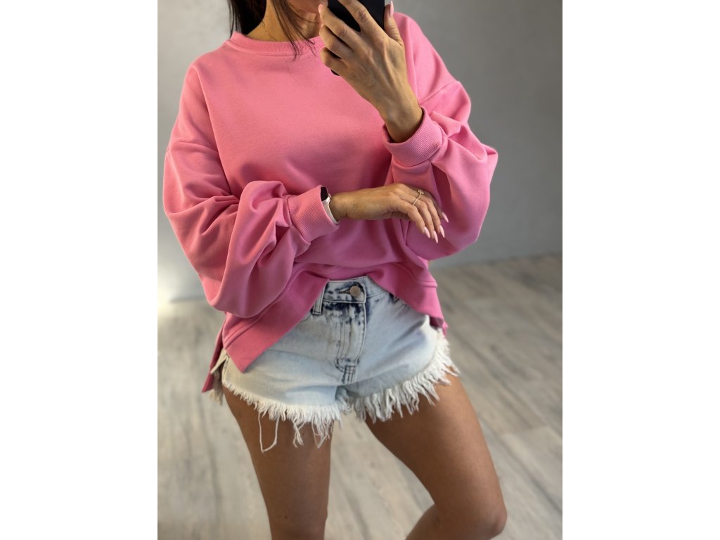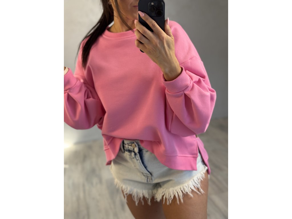 - Oversize asymetrická mikina s krásou růžovou barvou